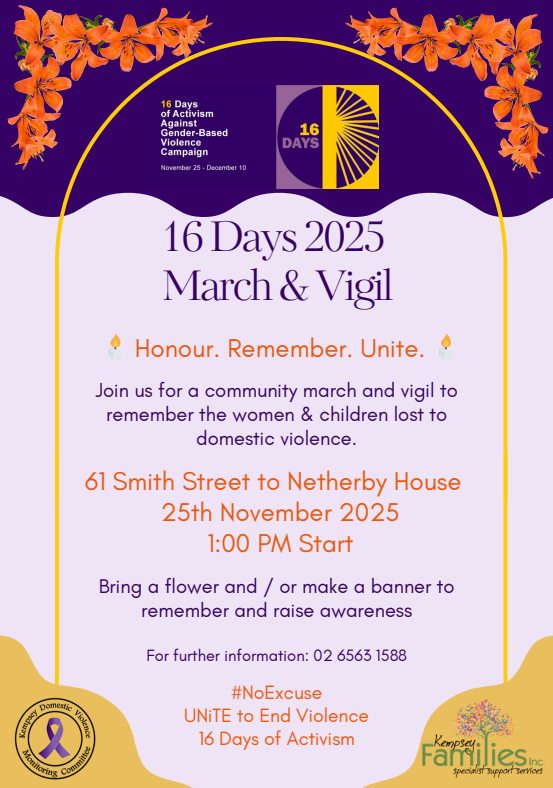 As part of the 16 Days of Activism Against Gender-Based Violence, we invite you to walk with us in solidarity — to honour survivors, remember those we’ve lost, and renew our commitment to a world free from violence and fear. The march will be followed by a flower vigil to reflect, remember, and rise.